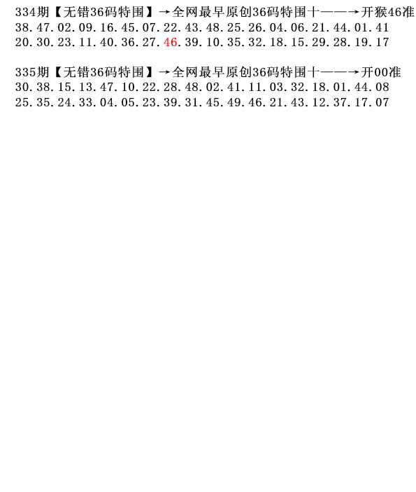 335期:内部资料★二码二码★36中36 (历史记录) 作者:内部资料