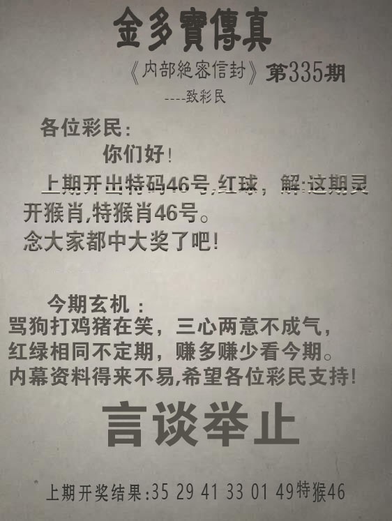 335期内幕传真★2.3.4.5码★打赏金币 (历史记录) 作者:内幕传真